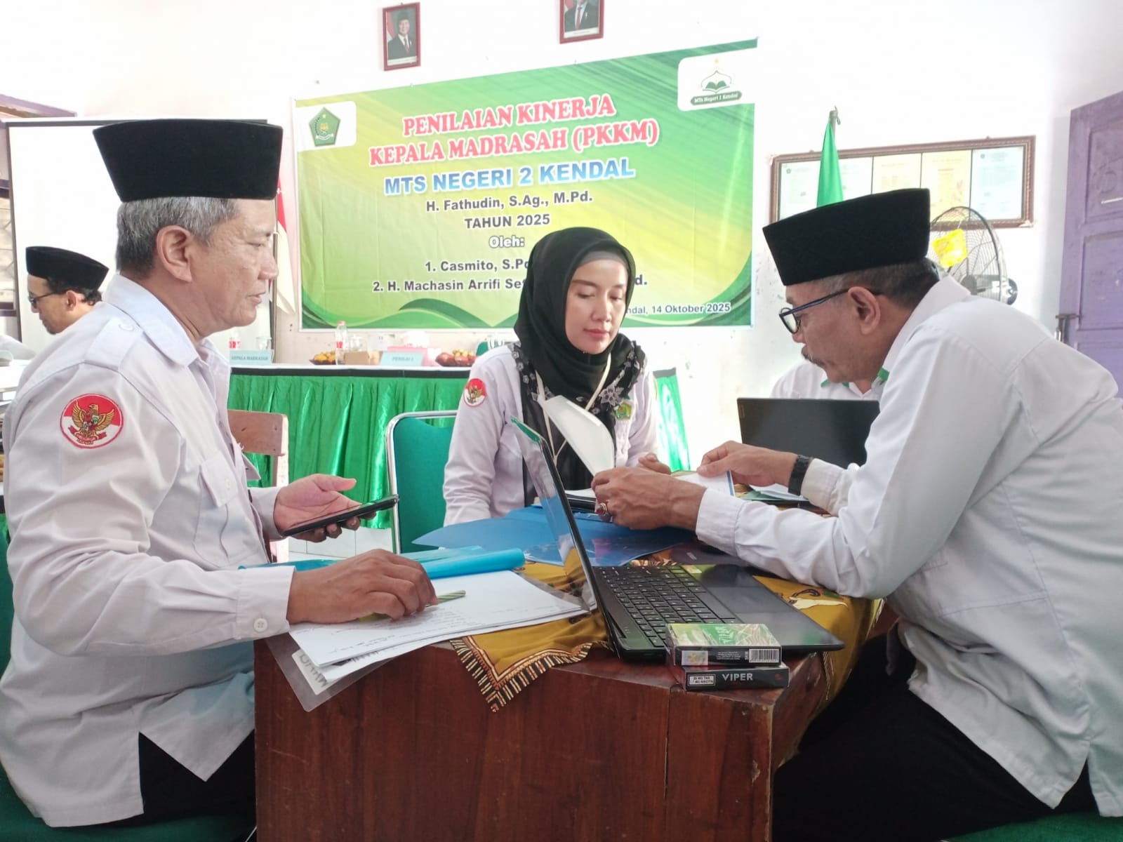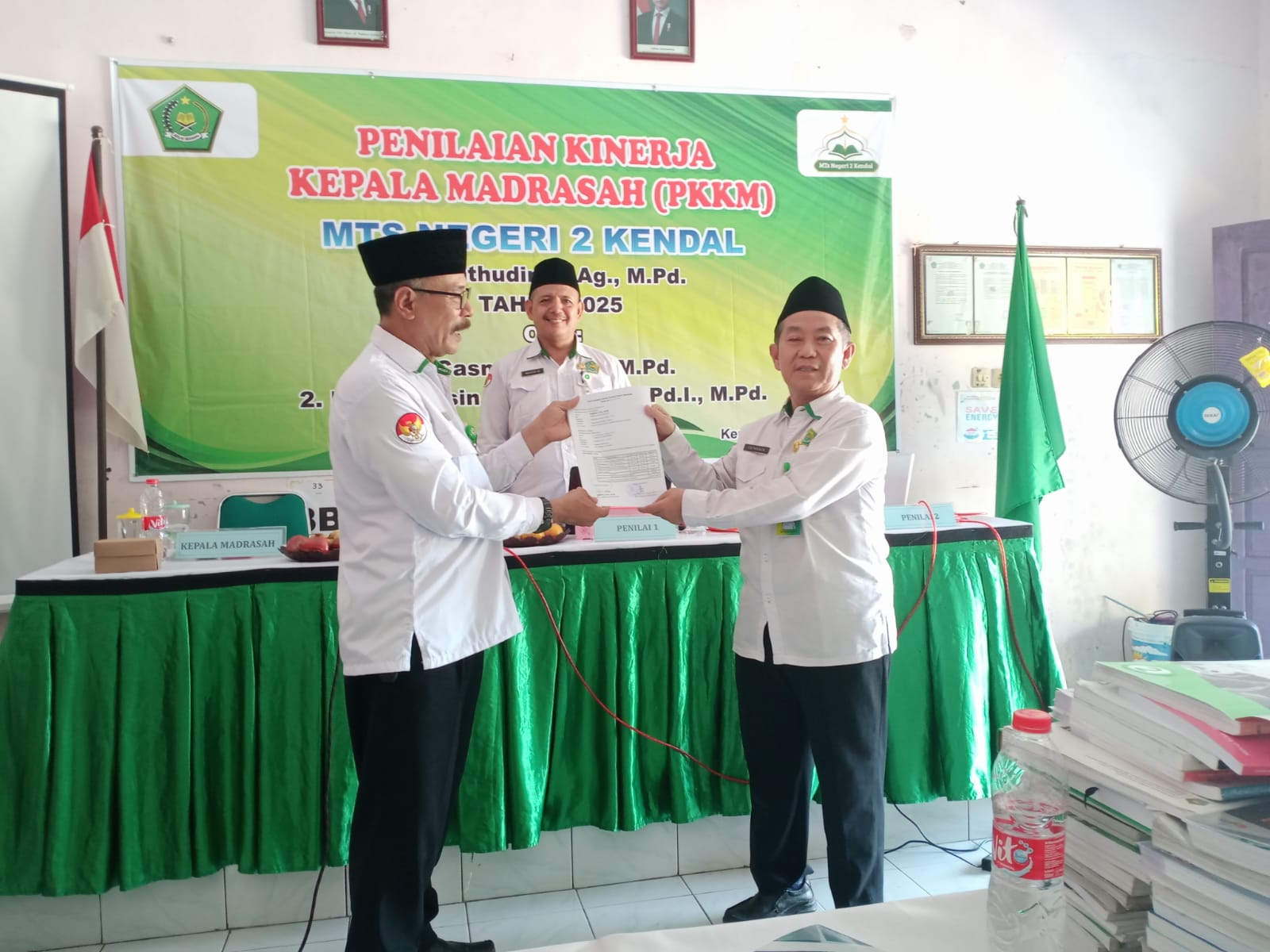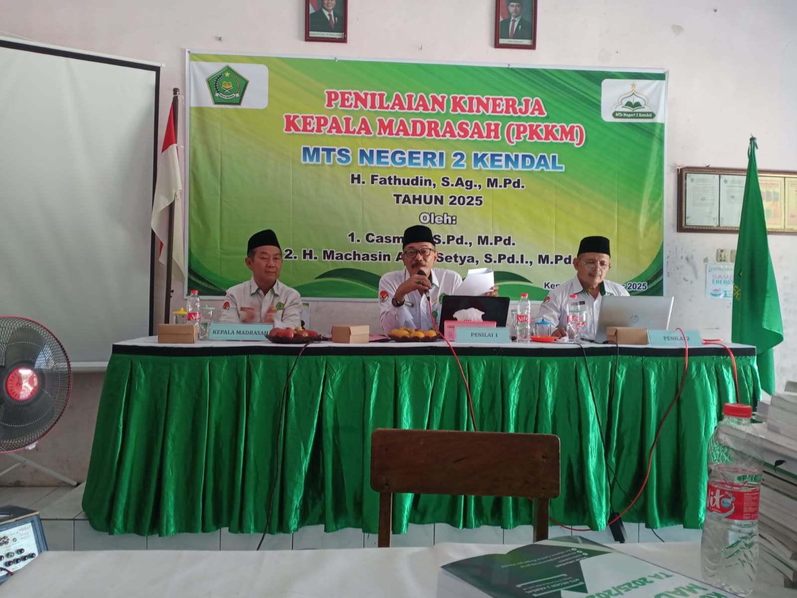 Penilaian Kinerja Kepala Mdrasah (PKKM) Tahunan MTsN 2 Kendal tahun 2025 dilaksanakan pada hari Selasa, 14 Oktober 2025 yang bertempat di ruang laborat IPA, ang dimulai pukul 09.00 s/d 12.00 WIB. Kegiatan PKKM ini dipandu oleh MC bu Eny Sulistyarini, S.Pd.I ang menyampaikan susunan acranya, yaitu dengan diawali pembukaan oleh bapak H. Fatkurochman, S.Ag, juga selakuketua Mahad In-Hadl. Untuk memupuk jiwa nasionalisme, maka dilanjutkan dengan menyanyikan lagu Indonesia Raya dan Mars Madrasah dengan dirigen ibu Ayu Budi Wijayati, S.Pd.I., M.S.I diiringi oleh orgen bapak Maryanto, S.Pd.