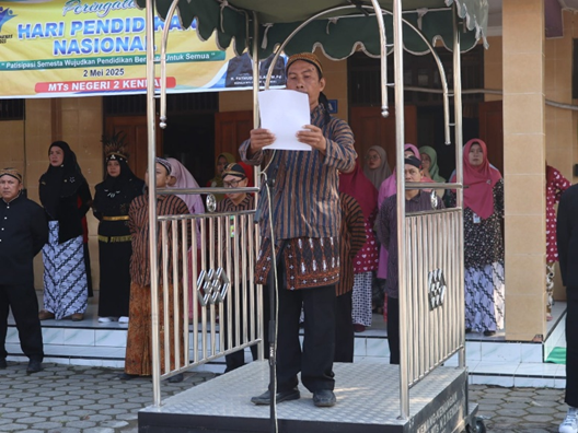 Pada kegiatan ini Pidato dari Menteri Pendidikan Dasar dan Menengah Republik Indonesia, Abdul Mu'ti yang dibacakan oleh Waka Kesiswaan MTsN 2 Kendal Bapak Agus Hanif, S.Pd menyampaikan, Hari Pendidikan Nasional merupakan momentum untuk meneguhkan dan meningkatkan dedikasi, komitmen, serta semangat untuk memenuhi amanat konstitusi, yaitu mencerdaskan kehidupan bangsa dengan memberikan layanan pendidikan yang terbaik, berumur, dan berkemajuan bagi seluruh anak bangsa.